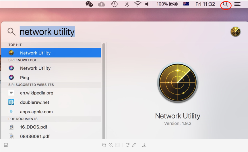 2. Type network utility, and press Enter