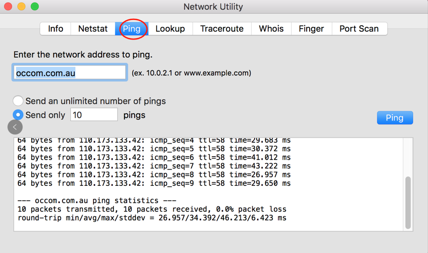 1. Ping test in Mac OS